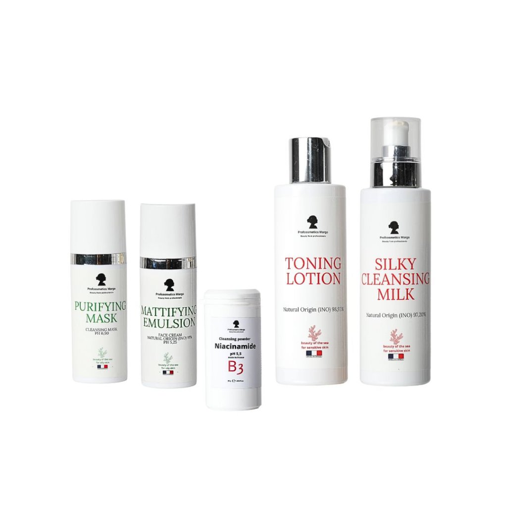 Sada. Francouzská kosmetika pro mastnou a smíšenou pleť Kompletní Set pro Mastnou a Smíšenou Pleť